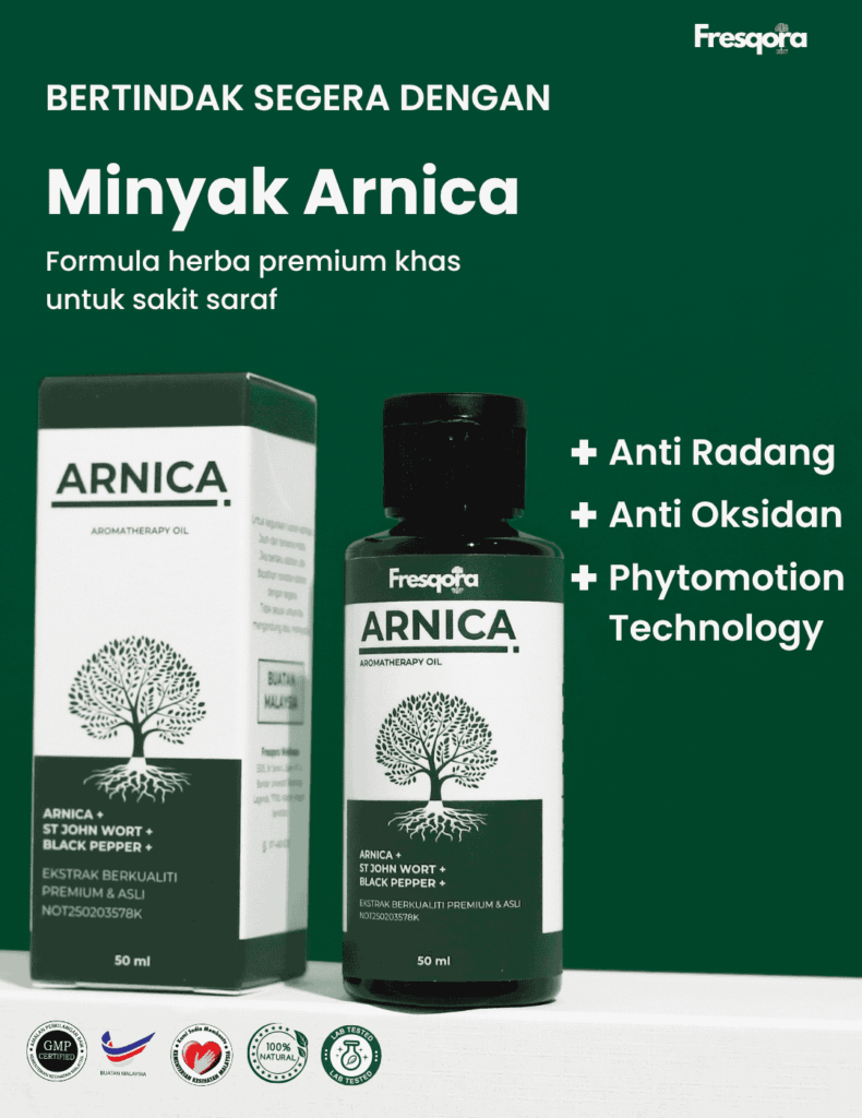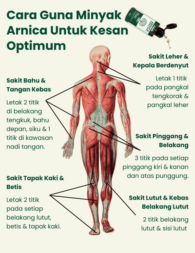 Tapi kalau anda tak pasti, boleh jarakkan sapuan Minyak Arnica selang sejam dengan ubat hospital.