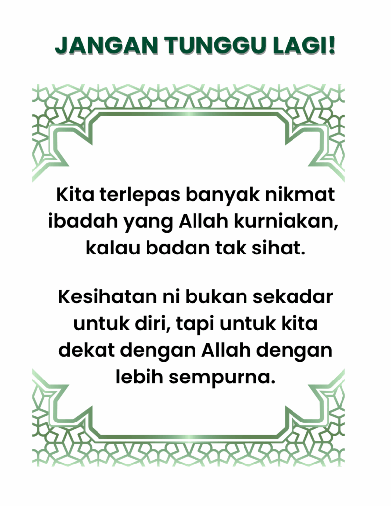 Kami tak nak anda putus asa untuk cari ikhtiar. Jika tak berkesan, kami pulangkan duit anda 100% sepenuhnya untuk anda cari ikhtiar lain. Setiap penyakit Allah turunkan penawar.